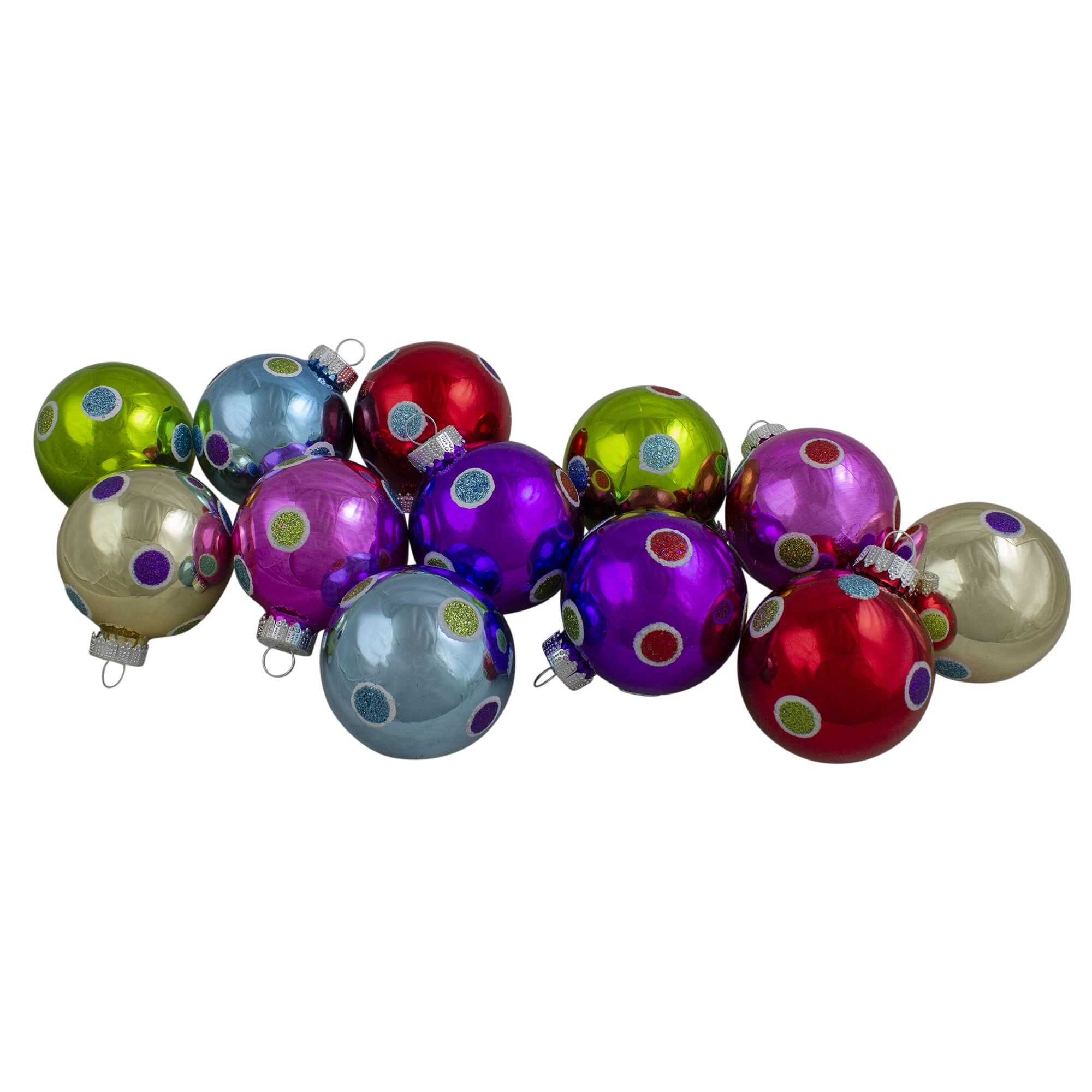 12ct Vibrantly Colored Shiny Glitter Polka Dots Glass Christmas Ball Ornaments 2 5 63mm Walmart Com